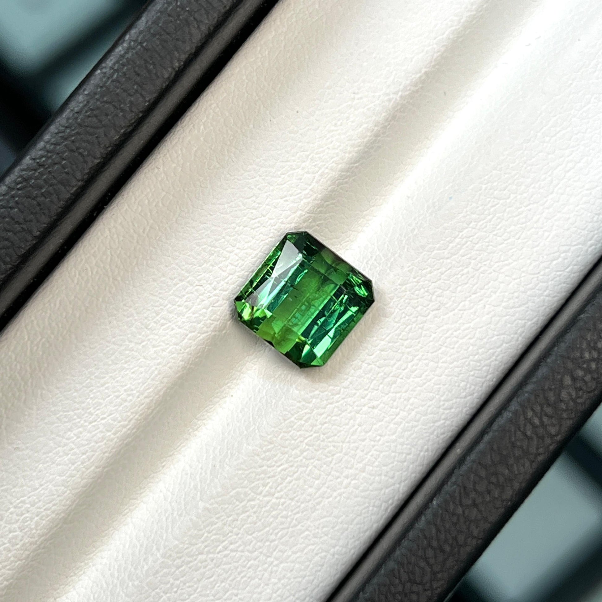 Stunning natural green tourmaline gemstone from Afghanistan, featuring a beautiful octagonal radiant cut. This transparent gemstone weighs 4.730 carats and measures 9.33x9.12x6.22mm.
