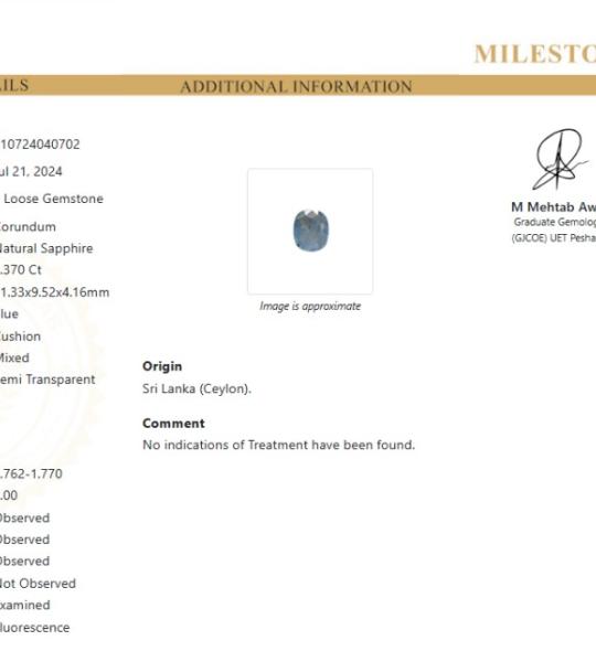 This gemstone comes with a professional gemological report (ID: 10724040702, dated July 21, 2024) certified by M Mehtab Awan, Graduate Gemologist (G/GDE) UET Delhi, ensuring authenticity and quality.