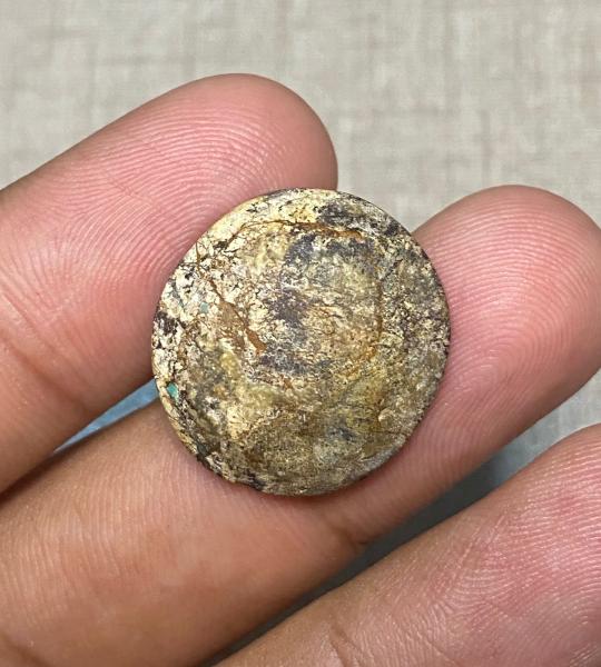 Experience the captivating beauty of this premium natural turquoise gemstone, expertly cut in a classic round cabochon shape. This stunning 22.895-carat specimen showcases a mesmerizing blue color with distinctive brown matrix patterns that add unique character and authenticity.