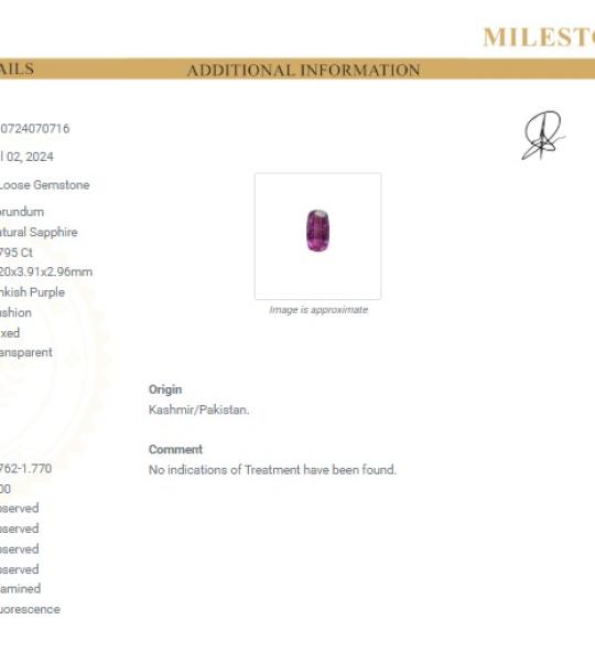Experience the allure of this exquisite natural corundum sapphire, certified and untreated. This stunning gemstone showcases a captivating pinkish purple hue that radiates elegance and sophistication.